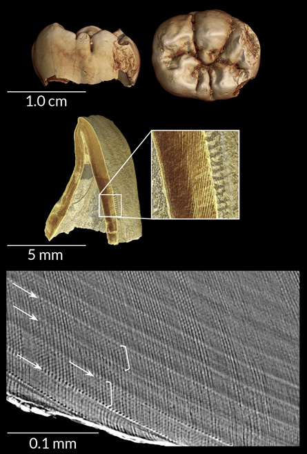 One developmental marker the researchers focused on was a microscopic line that forms inside teeth at regular intervals during childhood as daily enamel layers accumulate. Knowing the timing of these intervals is essential for estimating the age at which tooth development was complete.