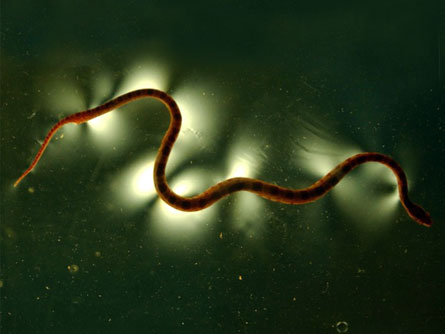 Hu and collaborators used video and mathematical models to analyze the distribution of forces for a milk snake moving forward on a flat surface. The researchers also placed moving snakes on a photoelastic gelatin that lights up when force is applied. This revealed areas where the snake uses more force to lift its body slightly and push forward, much like a foot pressing off the sidewalk to move.