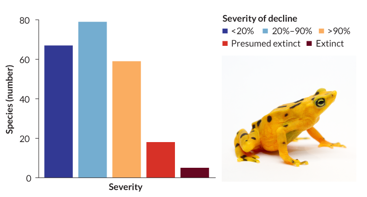 The region that includes Central America, Mexico and the Caribbean Islands has had the most declines worldwide in amphibian species as a result of chytrid fungal infections.