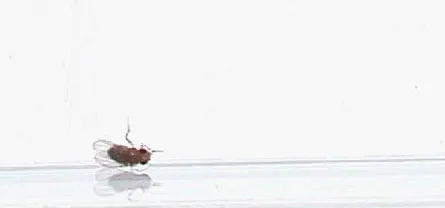 This fruit fly has been exposed to ethanol vapor, which renders it uncoordinated.