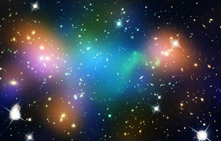 Amid the wreckage of a massive galactic collision lies an enigmatic heart of darkness —a clump of dark matter. Normally, dark matter — the unknown substance that makes up the majority of the universe’s mass — remains anchored to galaxies. But in Abell 520, a galactic cluster sometimes known as the “train wreck,” dark matter appears to have collected in the core even though the galaxies had moved on after colliding. Using the Hubble Space Telescope, researchers inferred the blob’s presence based on how it distorts light reaching Earth, they report in the March 10 Astrophysical Journal. Located 2.4 billion light-years from Earth, the parked clump challenges theories proposing that galaxies and dark matter travel together. Previously, a different galactic smashup called the Bullet Cluster supported the idea of tandem travelers. But now, astronomers seeking to explain the train wreck observations are considering alternative theories and scenarios, including the presence of sticky dark matter or dim galaxies hiding in the dark heart.