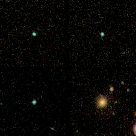 Now, a team of astronomers working with the volunteers has discovered that the Green Peas are hamming it up, forming stars at an enormous rate — about 10 times faster than the Milky Way. Spectra of the galaxies taken by the Sloan Digital Sky Survey — the source of the online images — indicate that the greenish hue comes from the glow of ionized oxygen gas heated by newborn stars, says astronomer Carolin Cardamone of Yale University.