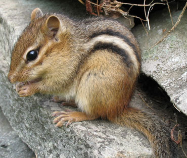 COPY CHIPMUNK Chipmunks evolved the same method for getting pinstripes as African striped mice did; repurposing a protein that affects face development and makes bellies white to create light stripes on the back. Gilles Gonthier/Wikimedia Commons (CC BY 2.0)