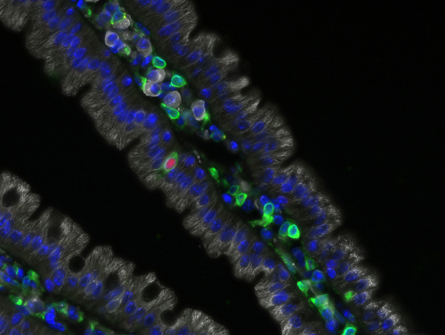 A new type of cell discovered in the lining of the intestine may help control inflammation and can give rise to tumors, a new study finds. Researchers in France have finally developed a method to identify an elusive type of cell called tuft cells in the intestinal lining, the team reports online March 7 in the Journal of Cell Biology. The cells make and secrete opioids, natural pain-killing molecules similar to morphine. Tuft cells are also the only source of two inflammation-related enzymes in the intestinal lining. The researchers also found the cells in early stage tumors in mice and humans. —Tina Hesman Saey