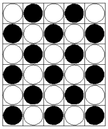 The “standard” game is played on a rectangular grid of squares–say, a portion of a checkerboard. One player governs the movement of white pieces, or stones, and the other player moves black stones. Initially, each square is occupied by a white or black stone, arranged so that the colors alternate.