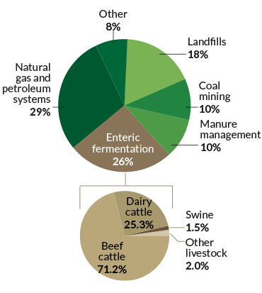 It isn’t the most abundant greenhouse gas created by human activity (that prize goes to carbon dioxide), but methane is one of the most powerful at trapping heat. In a “pound for pound” comparison, over a century, methane has an impact on climate change that is 25 times as great as CO2, according to the U.S. Environmental Protection Agency.