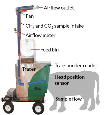 The system is an evolutionary bonanza for cattle, but it’s not so easy on the environment — which is why the animals at the Lacombe Research Centre are no ordinary grazers. Through a transponder clipped to the ear of each cow, scientists record when a cow sticks her head into a bin of tasty feed pellets. As she eats, a solar-powered fume hood above captures her exhalations. Laser beams surround the pasture, reading gases in the atmosphere.