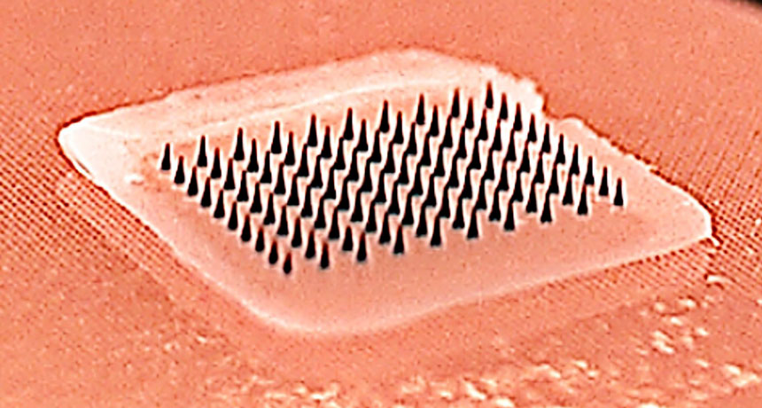 STUCK ON YOU This patch has an array of microneedles that penetrate the skin to deliver a dose of the flu vaccine.
