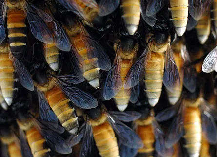 BEE WALL Called giant honeybees for a reason, these natives of tropical Asia and Southeast Asia grow bulkier and about twice as long as western honeybees — and get tough on defense.