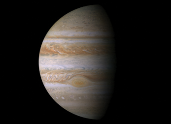 Saturn-bound Cassini captured this arresting view, the sharpest global portrait of Jupiter ever produced, as the spacecraft passed within 10 million kilometers of the planet on Dec. 29, 2000. Released by NASA last week, this true-color composite shows cloud features as small as 60 km across. White thunderstorms punctuate several of Jupiter’s cloud bands, while the Great Red Spot, a vortex bigger than Earth, sheds a wake. The thin, dark band in the planet’s northern half is Jupiter’s fastest jet stream. To assemble the 27 images that Cassini captured during an hour, scientists digitally repositioned and artificially re-illuminated each picture to correct for Jupiter’s rotation, thereby showing the entire planet as it would have appeared when the first image was taken.