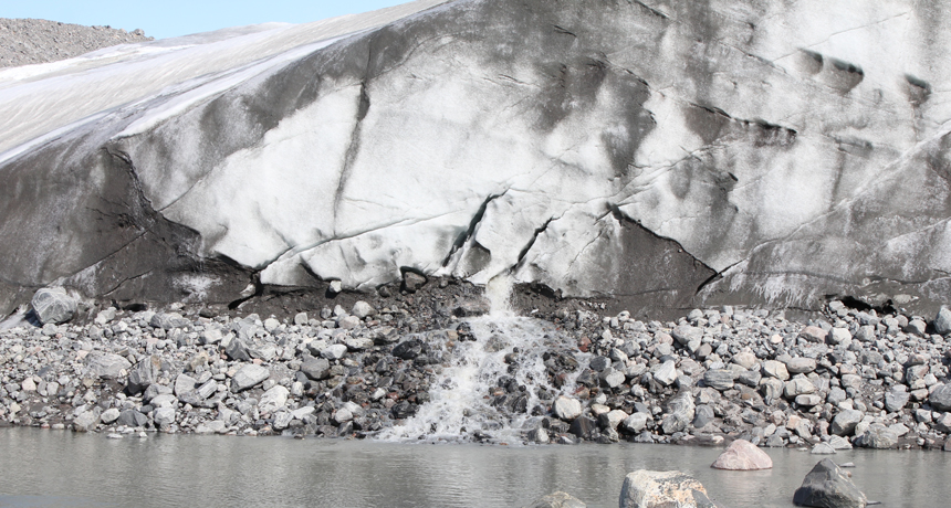 ICY MICROBES In melt streams under Russell Glacier (shown), a glacier at the western edge of the Greenland Ice Sheet, researchers found bacteria that can gobble up methane as it gurgles out from under the glacier.