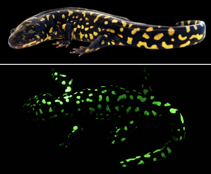 Blue and UV light can make patterns invisible to humans in natural light appear on amphibians