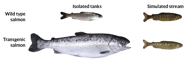 Yet different experiments, breeding GM Atlantic salmon with wild brown trout, suggest that in some contexts hybrid offspring can outcompete both their GM and wild parents, scientists reported in the Proceedings of the Royal Society B in 2013.