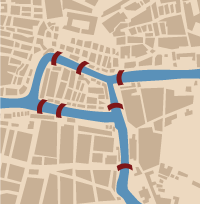 Mathematician Leonhard Euler proved in the 18th century that there was no journey through Königsberg, Prussia, that would take a walker across each of the city’s bridges once and only once. By simplifying the city’s layout — four land areas connected via seven bridges (as shown) — into a series of nodes connected via paths, Euler established the foundations for modern network theory. Today researchers study the brain by similarly reducing it to an architecture of nodes and paths. Neurons or groups of neurons are Königsberg’s landmasses, and connections between those neurons are the city’s bridges. Recent work suggests anesthesia can disrupt the brain by interfering with the system in two ways — changing the layout of the nodes and altering the efficiency of the pathways.