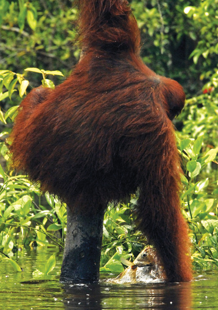 Although orangutans usually fished alone, Russon observed pairs of apes catching catfish on a few occasions. In one case, an orangutan cringed and pulled away as its companion extracted a fish from a pond. Russon suspects that the onlooker was learning — or at least trying to learn — how to nab aquatic snacks.