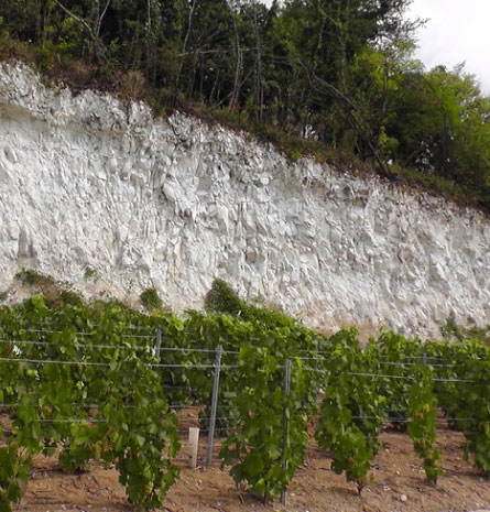 “One of the unique attributes of the Champagne region in France is the chalky soil,” Busalacchi says. “That limestone soil is an important attribute, giving wine grapes the drainage and acid backbone needed to produce dazzling champagne wines.”