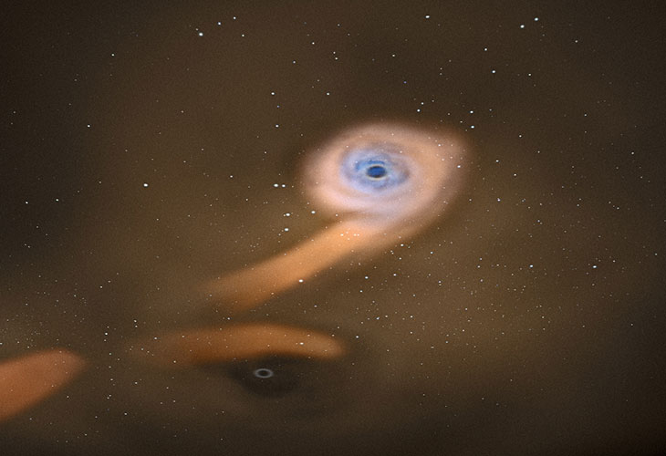 COSMIC SHAKE-UP Colliding black holes send ripples through spacetime that can be detected on Earth. The Advanced Laser Interferometer Gravitational-Wave Observatory, or Advanced LIGO, which has detectors in Louisiana and Washington, has directly observed these gravitational waves.