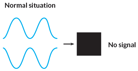 The experiment is designed so that, in normal conditions, the light waves cancel one another out when they recombine, sending no light signal to the nearby detector.