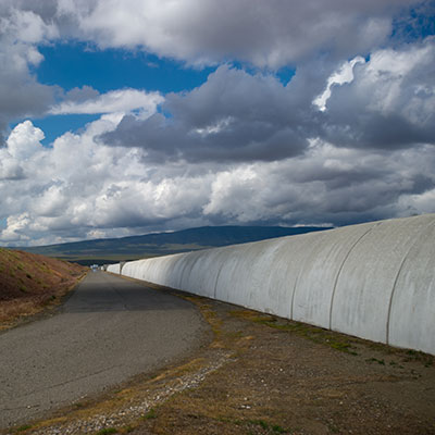 One of the arms, each a 4-kilometer-long vacuum tube, lies inside a concrete shell (pictured) near Hanford, Wash.