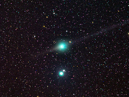 First spotted by a young Chinese astronomy student Quanzhi Ye in 2007, Comet Lulin will pass within 61 million kilometers of Earth, about 41 percent of the Earth-sun distance. Named for the observatory in Taiwan where it was discovered, Lulin has a greenish cast because sunlight illuminates two gases — cyanogen and diatomic carbon — in its Jupiter-sized atmosphere.