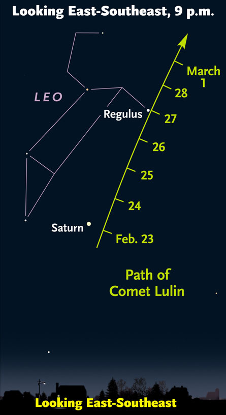 On February 24, Lulin will lie close to Saturn in the constellation Leo. Saturn will be clearly visible to the naked eye, and with luck, Lulin could be as well. There is a special element of unpredictability, notes astronomer Mike Sitko of the University of Cincinnati in Ohio. Researchers believe that this is Lulin’s first foray to the inner solar system, and that it probably originated in the deep freeze of the Oort Cloud, a comet reservoir thousands of times farther from the sun than the Earth lies.