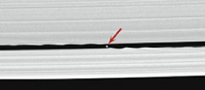 Such is the case for a tiny moon that Cassini has now spotted in the Keeler gap, which lies just inside the outer edge of Saturn’s A ring. Early in the mission, the craft had found a set of spiky and wispy wavelike features in the gap’s outer edge, prompting scientists to suspect that a moon was lurking there. The waves resemble those found in Saturn’s F ring and the Encke gap, which were already known to have been generated by moons.