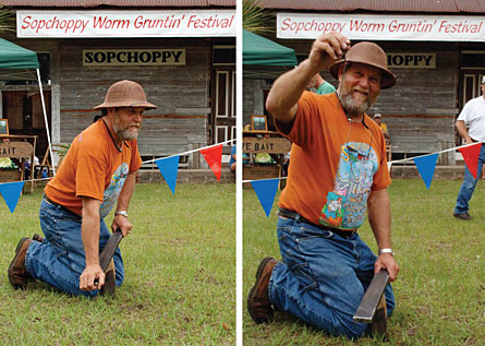 Catania started his quest to understand worm grunting by visiting the 2008 Sopchoppy Worm Gruntin’ Festival in Florida. There, expert practitioners Gary and Audrey Revell, who run a local bait shop, wowed Catania with their speed at catching the hefty Diplocardia mississippiensis earthworms.