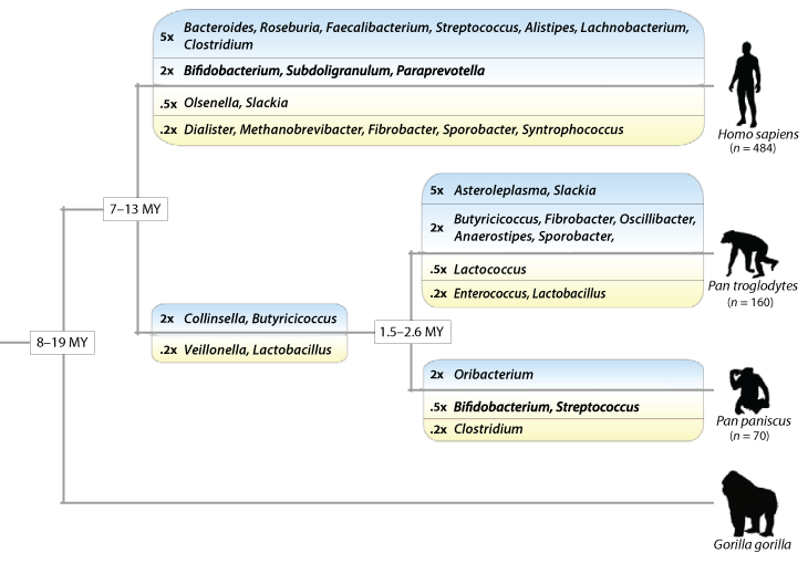Compositions of microbial communities in the gut steadily changed as African apes evolved, but in humans such shifts have reached a frenzied pace with most alterations weeding out microbe diversity, Andrew Moeller, an evolutionary biologist at Yale University, and colleagues report November 3 in the Proceedings of the National Academy of Sciences.