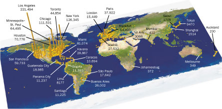 Between March and April of 2008, a total of 2.35 million passengers flew from Mexico to cities around the world. Of the 20 countries with the most passengers arriving from Mexico, 16 had confirmed H1N1 cases associated with travel from Mexico by May 25, 2009. Countries receiving more than 1400 passengers from Mexico were at a much higher risk of importing the virus, the new analysis shows.