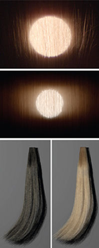 Although adding transparency improved the naturalness of computer-generated black and dark-brown hair, blond hair still looked lifeless. In the 2003 model, light that had passed through a hair didn’t illuminate other hairs.
