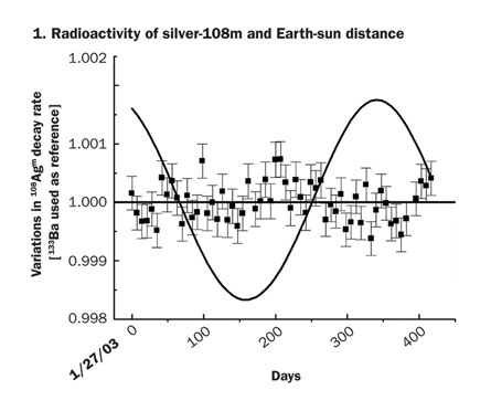 More recently, Fischbach found what he says is more evidence for his case. Exhibit A: An experiment on tritium, a radioactive isotope of hydrogen, which his collaborators are running at Purdue, may be measuring a seasonal effect, he says. Exhibit B: A 1990 paper by Kenneth Ellis of Baylor College of Medicine in Houston reported seasonal variations in plutonium-238 radioactivity in a calibration experiment for a radiotherapy machine.