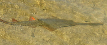 Sawfish, like bull sharks, welcome murky water and tolerate low salinity. They can even live in fresh water for months. Although adult sawfish eat fish, juveniles use their saws like shovels to excavate crabs and other marine life from sediments.