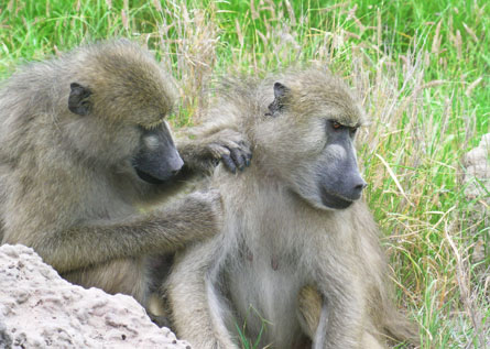 GROOMER MILL Female chacma baboons that form close, lasting friendships, such as this pair in which one is grooming the other, tend to live longer than female troop mates that switch friends more often, a new study finds.