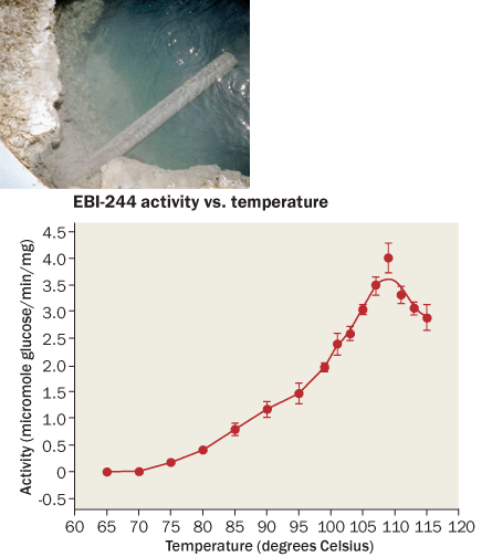 At this locale, the biologist from the University of Maryland, Baltimore was fishing for microorganisms that can thrive at very high temperatures. Such extremophiles contain reaction-driving proteins called enzymes unlike any found in less harrowing environs.