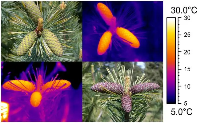 It is likely that the cone’s heat is due in part to biophysics — bigger objects collect heat better than smaller objects — and a cone’s surface tends to reflect radiation. But the warmth may also be metabolic, generated during the activity of seed development, says Takács.