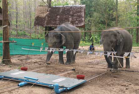 To design a test appropriate for elephants, Plotnik worked with study coauthor Frans de Waal of Emory University in Atlanta to modify a test used for primates. The researchers outfitted an elephant-sized platform with two bowls of food treats mounted on the front edge. Threaded around the table was a single rope with its ends dangling into lanes where elephants showed up for a snack. One important feature, Plotnik says, was that if one elephant pulled on the rope before the partner got a grip, the rope would jerk out of the partner’s reach so no snacks would be available during that particular round of testing.