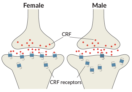Because females don’t pull back on the number of exposed CRF receptors following a stressful event, their brains may be more responsive to high levels of CRF, even after repeated exposures to a stressful event, Bangasser says.