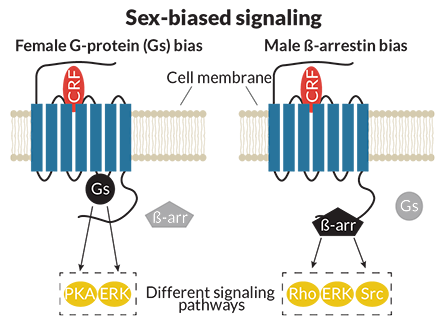Fluctuations in sex hormones over a lifetime may influence the body’s reaction to stress, for better or worse. To look at that issue, Bangasser’s group studies how estrogen, progesterone and testosterone interact with a neuropeptide called corticotropin-releasing factor, or CRF, to influence cell signaling in the brains of stressed-out rodents.