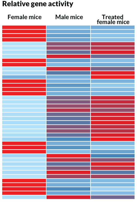 Hodes’ group found a way to reverse the damaging effects of epigenetic changes in the brains of female rodents. First, Hodes and colleagues transformed a brain structure in a young female rat, giving it malelike attributes, by injecting a drug that altered gene expression. The process, detailed in Nature Neuroscience last May, involved drugs that inhibit a family of three enzymes known as DNA methyltransferases, or Dnmts. These enzymes can alter the epigenetic marks on DNA, and thus gene activity, without changing the underlying genetic sequence.