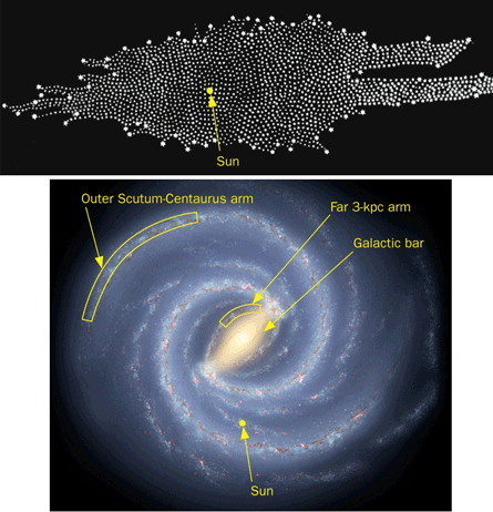 But just as 19th century explorers filled in huge blanks on the American map, so did 20th century skywatchers flesh out a much greater map — of frontiers far beyond the solar system, out across the entire Milky Way. Now, in the last few years, cosmic cartography has again redrawn modern science’s picture of the galaxy, from the inside out.