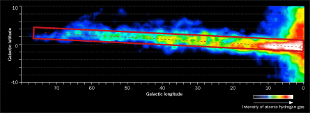 The first jigsaw piece fell into place in the 1950s, when astronomers discovered that they could study a particular spectral line in light coming from distant stars to trace how neutral hydrogen gas is distributed through the spiral arms. This particular wavelength, at 21 centimeters, is in the radio part of the electromagnetic spectrum, which means it can pass unscathed through the dust that blocks telescopes’ view in visible wavelengths. Suddenly, scientists could look for signals coming from gas clouds in other parts of the galaxy and begin to map out its large-scale structure.