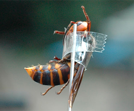 The researchers taped anesthetized giant hornets to gas detectors and thermometer probes to measure carbon dioxide concentrations and temperatures inside bee balls. When the probes touched open bee nests, the bees formed balls around the hornets. All 24 test hornets died within 10 minutes of bee ball formation, the team reports. Hornets bore no sign of stings, pointing to smothering as the cause of death.