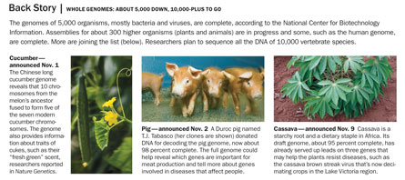 Were Old McDonald in the genome sequencing business, he would be among the researchers who have announced decoding the complete genetic blueprints of the horse, pig and cucumber.