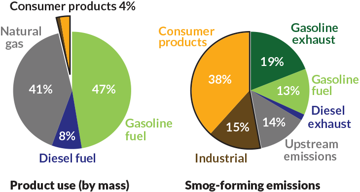Editor’s note: This story was updated March 7, 2018, to clarify two points – the definition of fine particulate matter and the comparison between how much oil and gas is used as fuel versus ends up in consumer products – and to correct fuel’s share of VOC emissions.