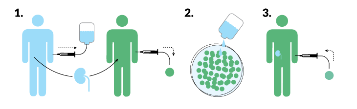 Ildstad and Leventhal’s secret ingredient is a type of immune cell called a facilitator cell. Regenerex collects facilitator cells from the donor’s blood (using a proprietary procedure) and transplants them with the bone marrow stem cells and the kidney. Those facilitator cells help the donor marrow settle in, so much so that more than 95 percent of the immune cells in the recipient’s blood are made by the donor stem cells. The transplanted immune system ignores the donor kidney, because it looks like home.
