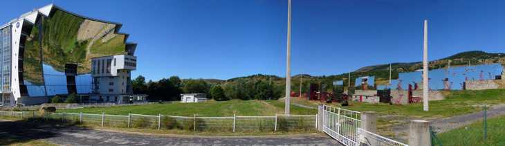 One way the Parker team mimicked the sun’s heat was using actual sunlight. Engineers took material samples to the world’s largest solar furnace, the PROMES facility in Odeillo, France. A series of 63 mirrors built on a hillside redirect sunlight onto an enormous concave mirror on the side of an eight-story building. That mirror then focuses the sunlight into a beam no more than 80 centimeters wide that heats materials to 3000° C inside a small vacuum chamber in a laboratory on stilts.