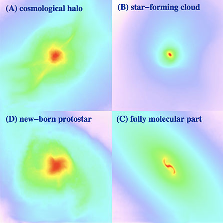 After nearly two years of testing, it took a month of computing time to run the simulation. It’s the first model that connects the universe’s primordial fluctuations in density to the growth of a bona fide fledgling star, Yoshida says.