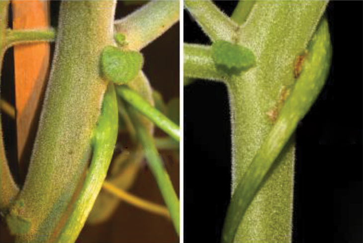 VICIOUS VINE One of the dodder vines, Cuscuta reflexa, twines over neighboring plants and sucks the life out of them — unless they have a wooden-stake gene.