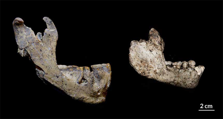 ONE OR TWO These ancient lower jaws excavated in West Asia come from two different Homo species, a contested study concludes. The assessment conflicts with the proposal by the fossils’ discoverers that they represent a single species.