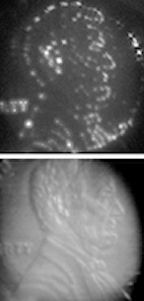 In an uncompressed sensor, electrons responding to the voltage would tend to flow between layers of gold nanocrystals and layers of cadmium sulfide nanocrystals, but sheets of insulating polymers bar the way. When the sensor touches something, pressure at spots along the film forces the nanoparticle layers closer together, raising the tunneling odds and allowing electricity to flow at those spots. Because an electric current makes cadmium sulfide glow, the sensor yields an image of the topography it contacts.